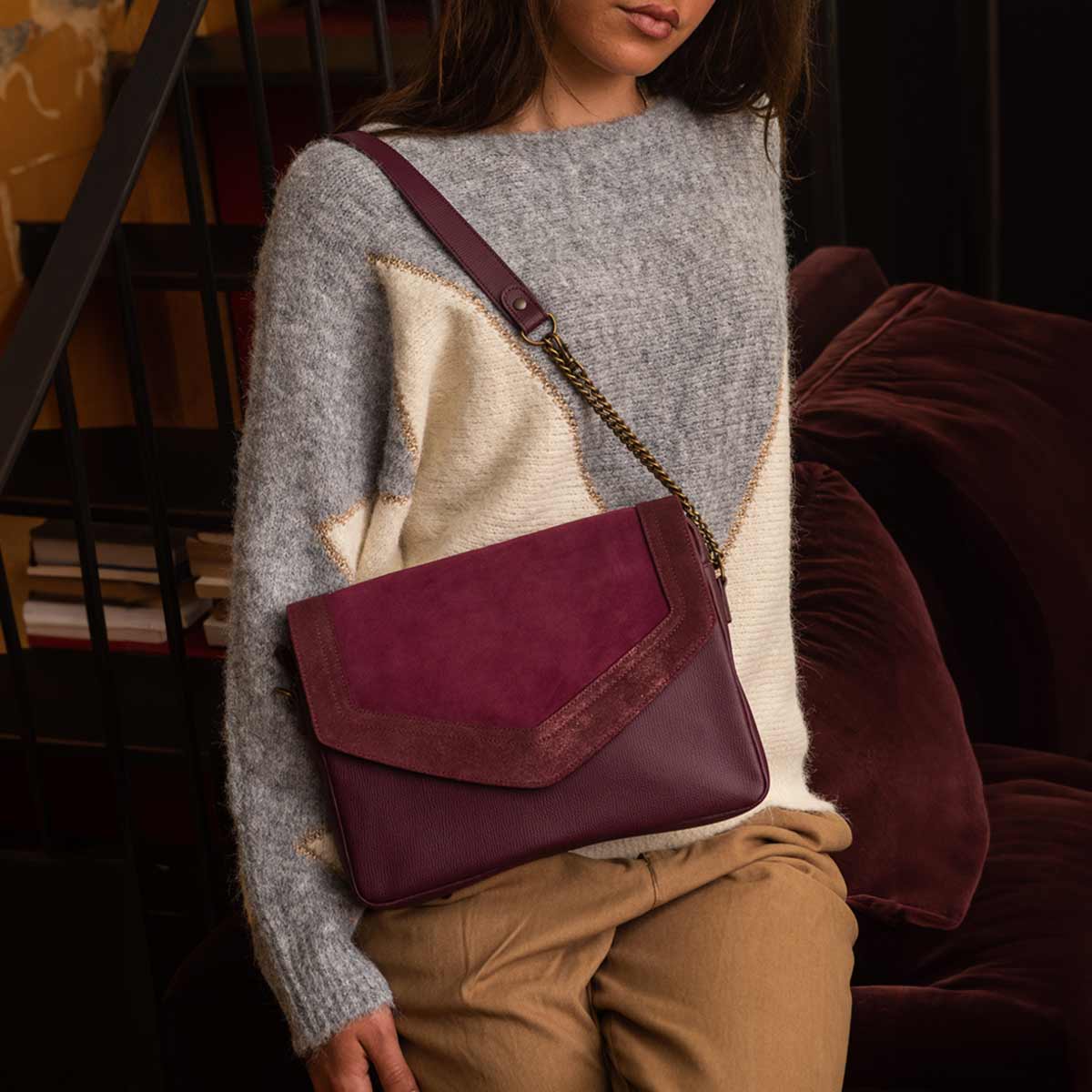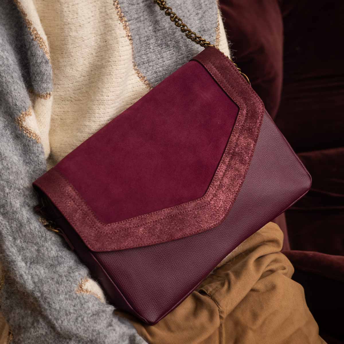 Sac en véritable cuir de vachette avec mix de cuirs métallisés et/ou pailletés selon les coloris