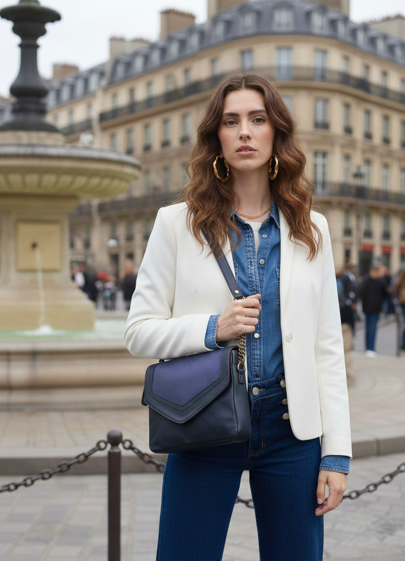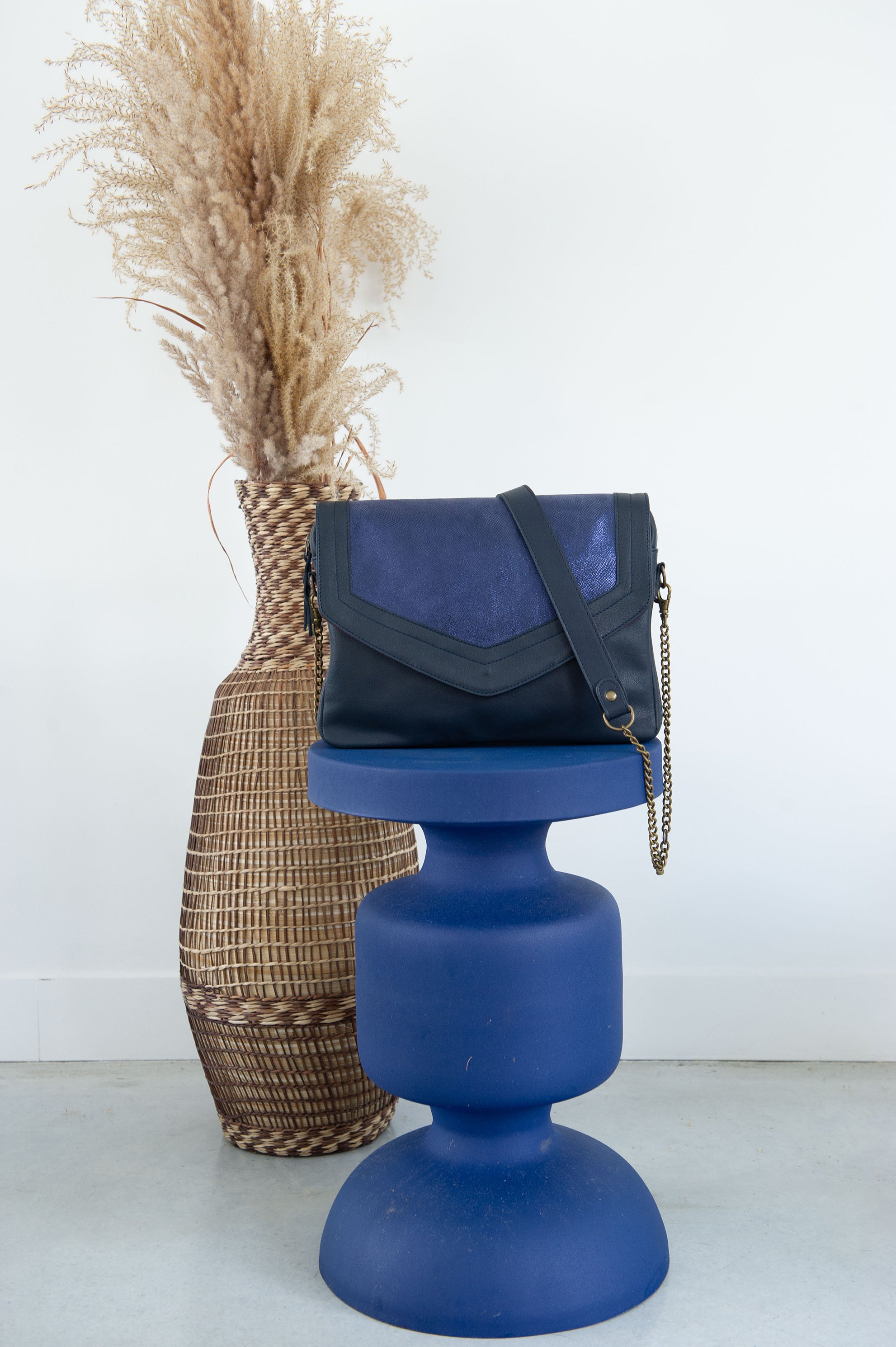 Sac en véritable cuir de vachette avec mix de cuirs métallisés et/ou pailletés selon les coloris
