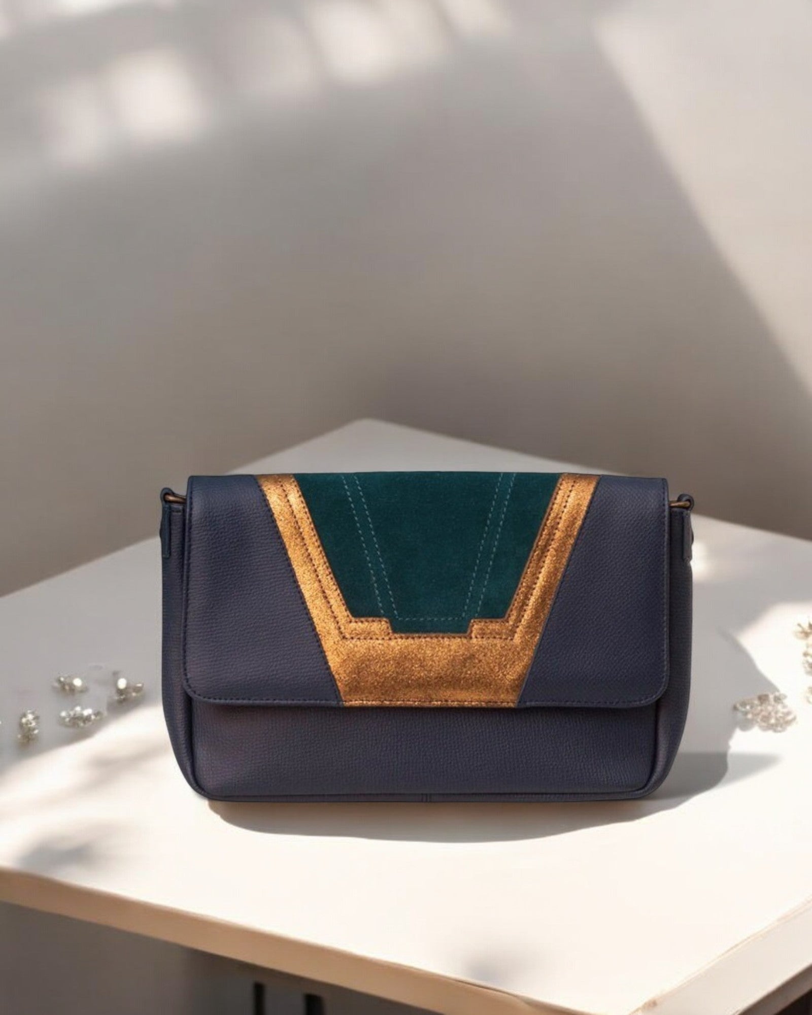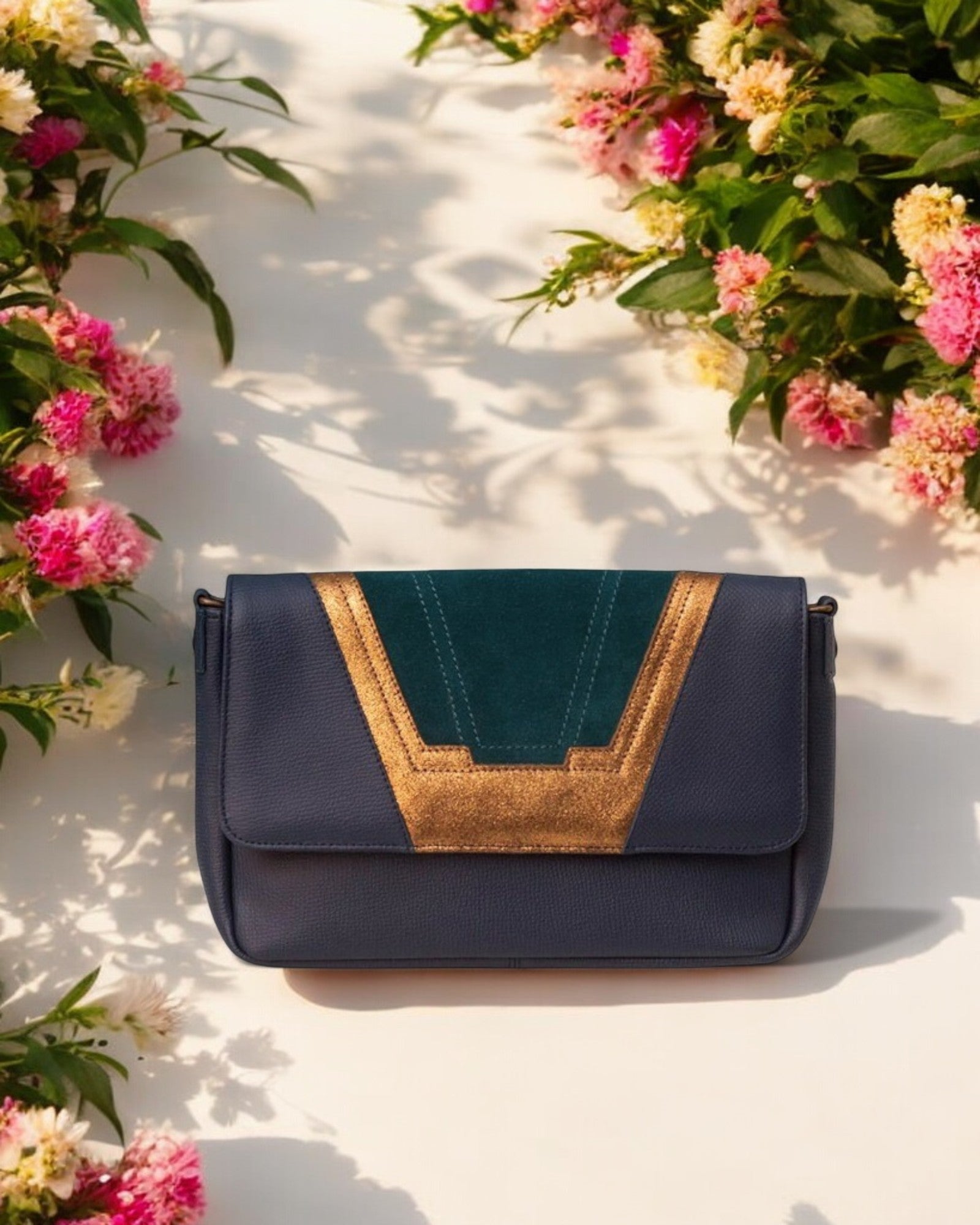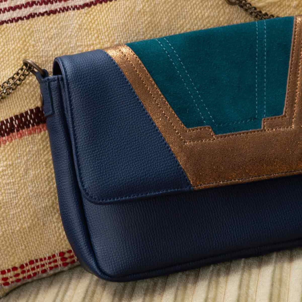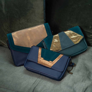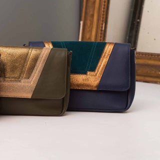 Sac en véritable cuir de vachette avec mix de cuirs métallisés et/ou pailletés selon les coloris
