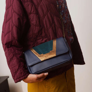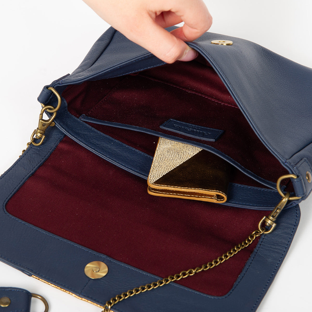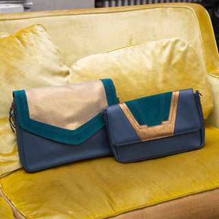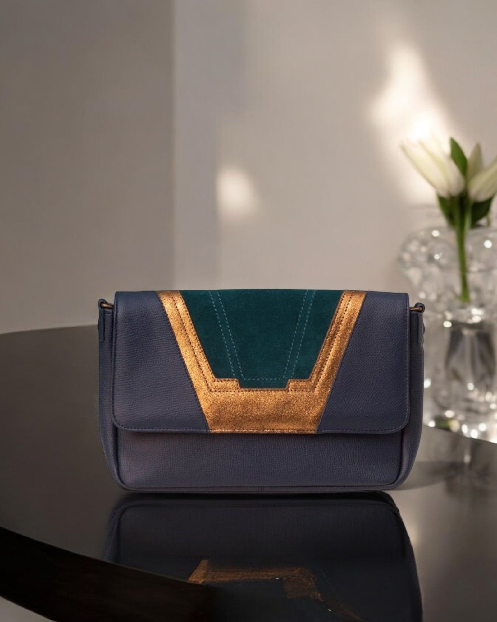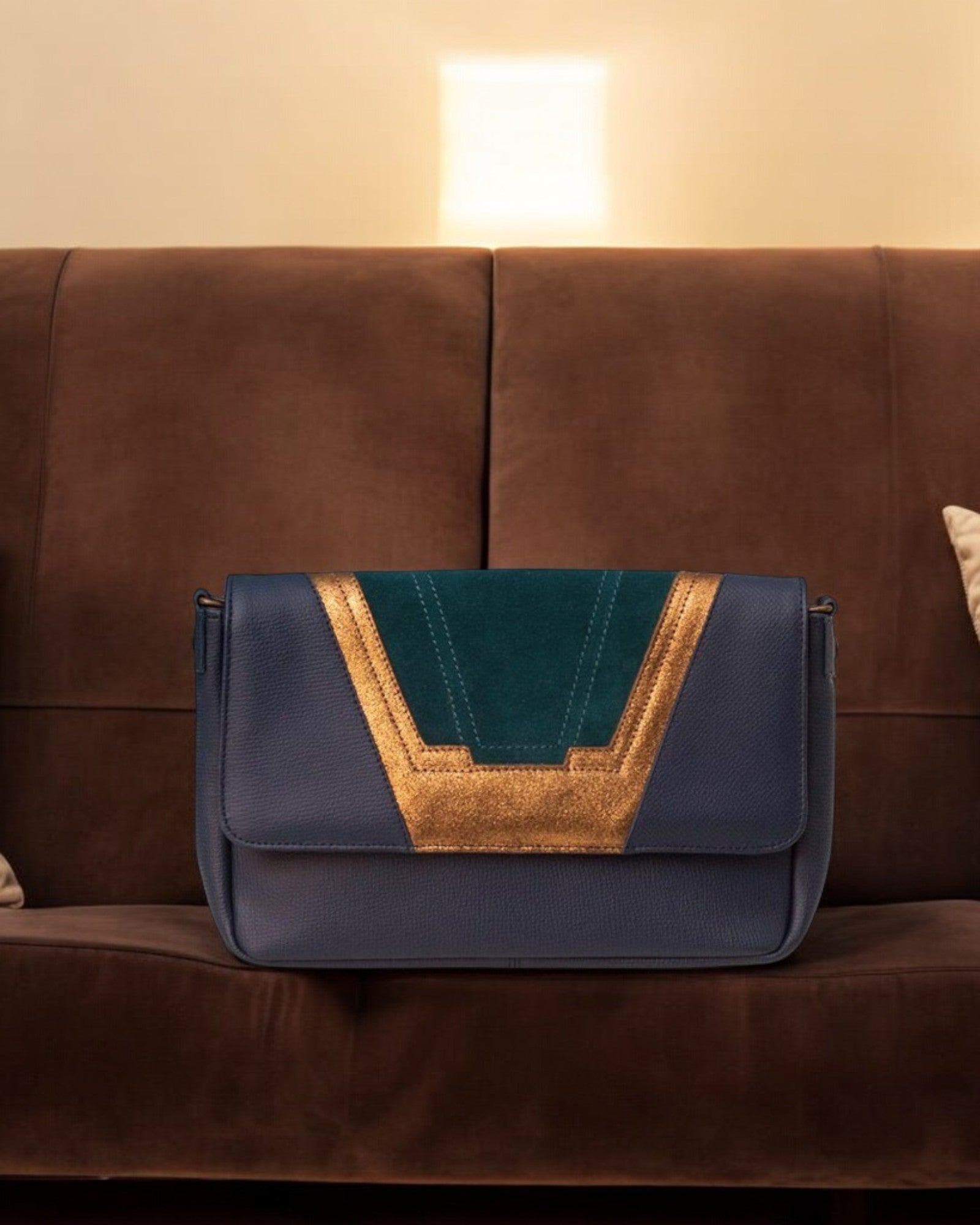 Sac en véritable cuir de vachette avec mix de cuirs métallisés et/ou pailletés selon les coloris
