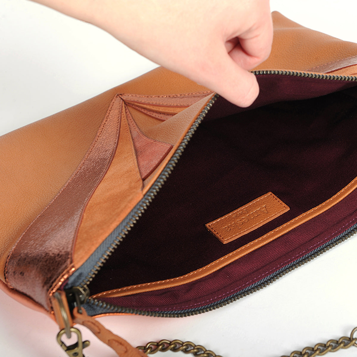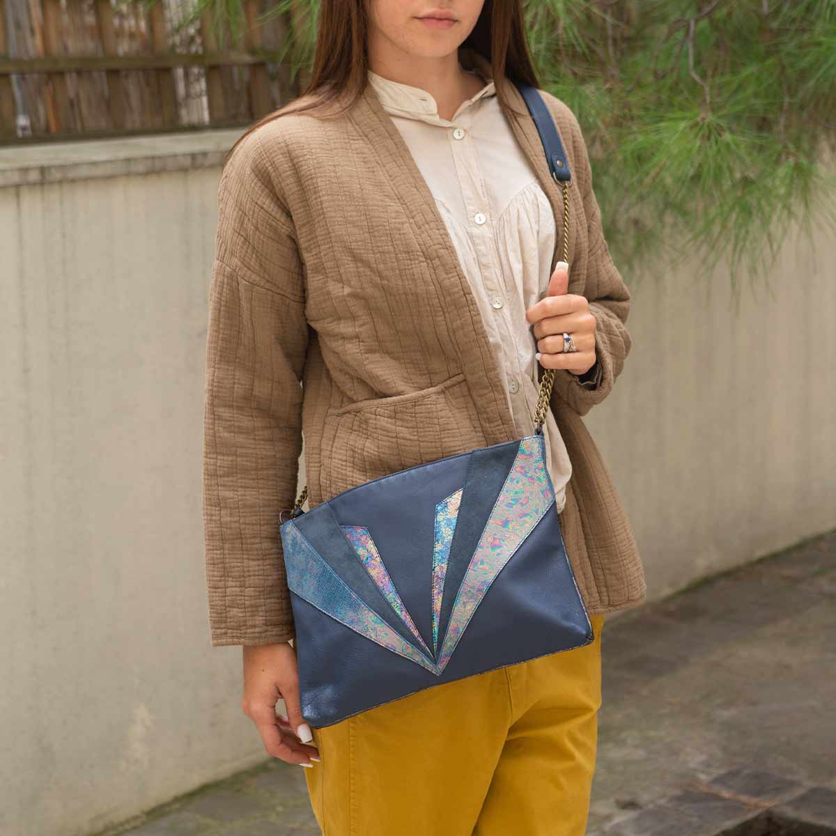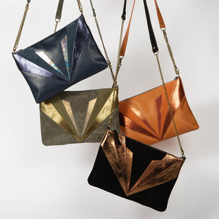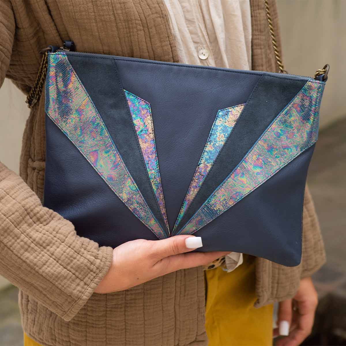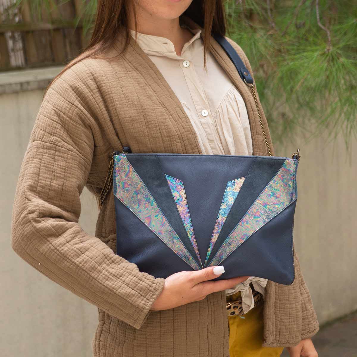 - Sac en véritable cuir de vachette avec mix de cuirs métallisés et/ou pailletés selon les coloris