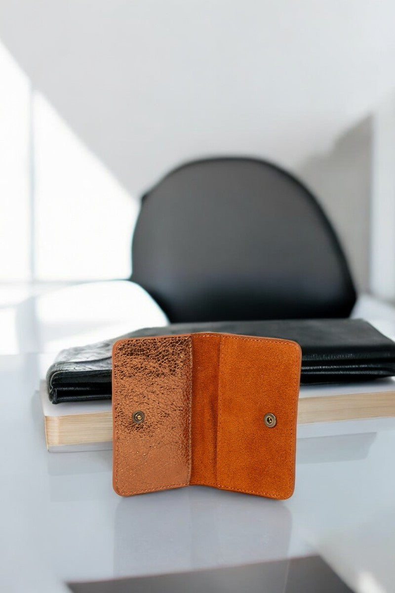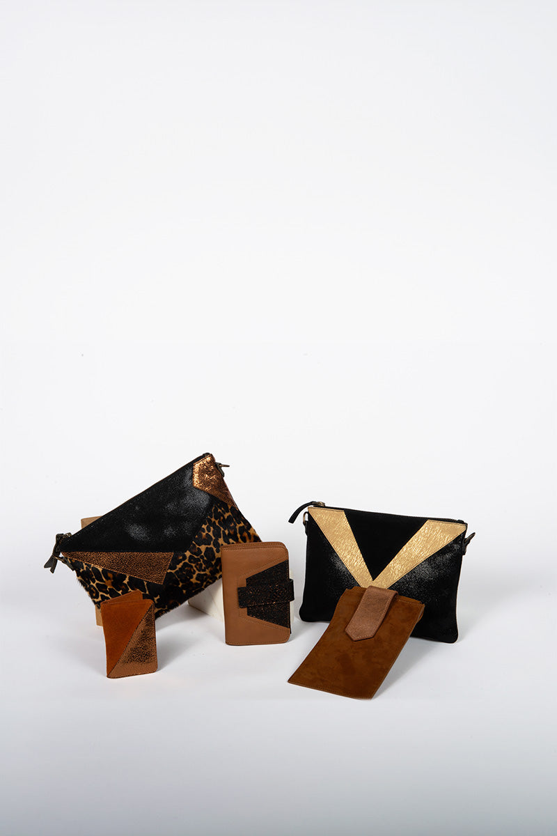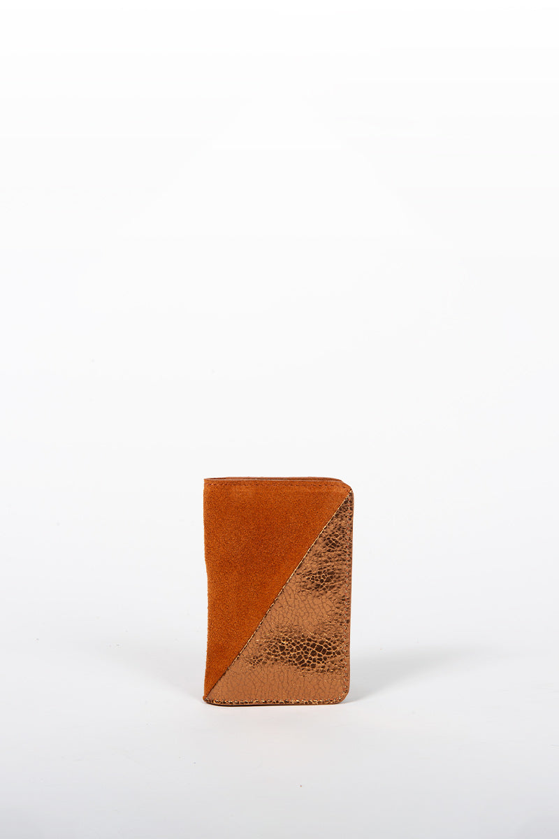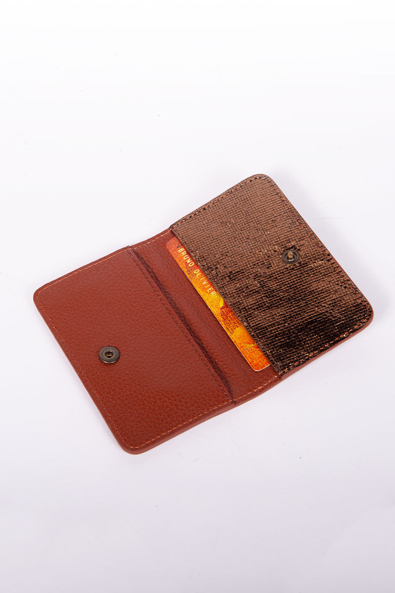 Porte-carte en véritable croûte de cuir et cuir de vachette avec mix de cuirs métallisés et/ou pailletés selon les coloris