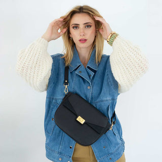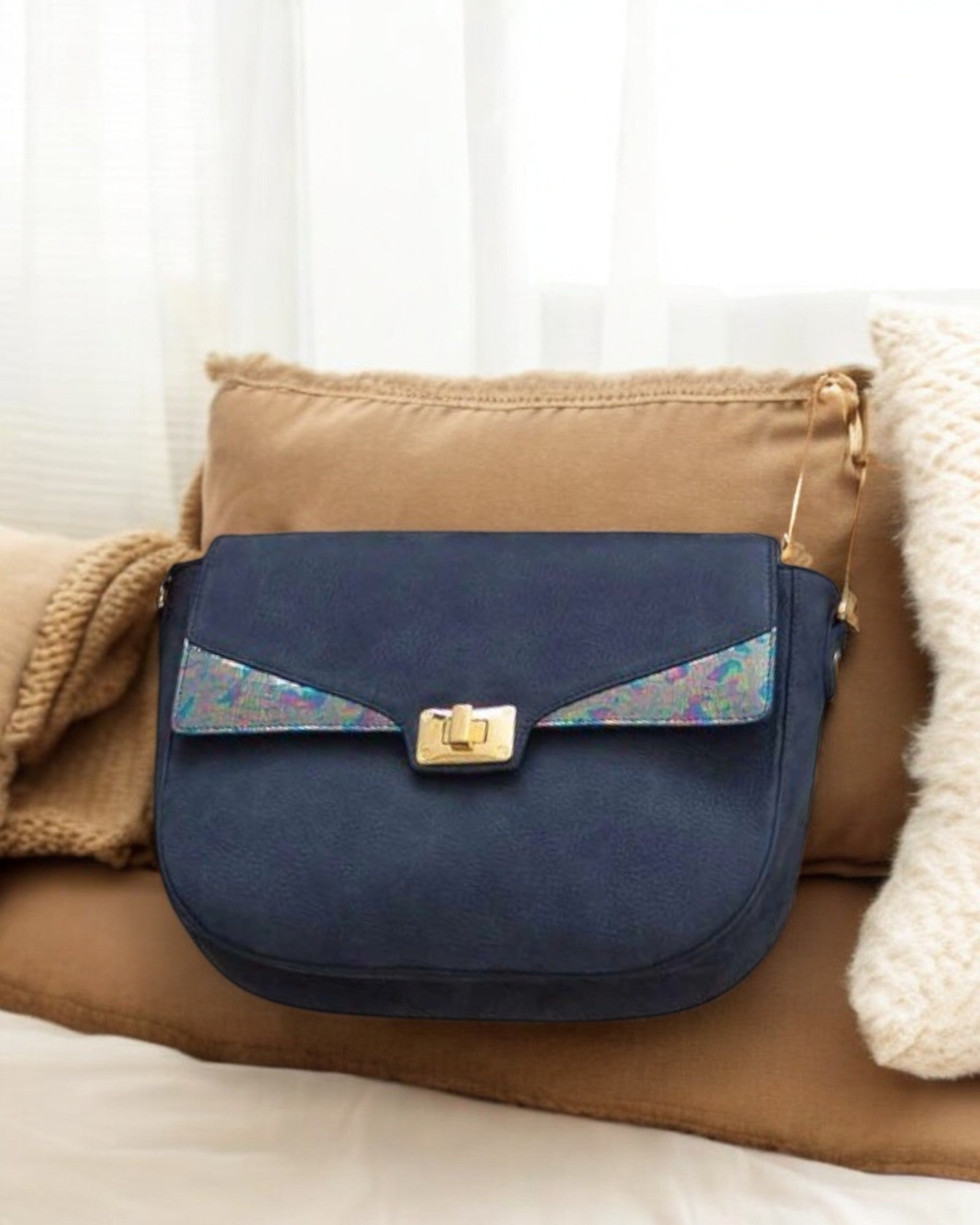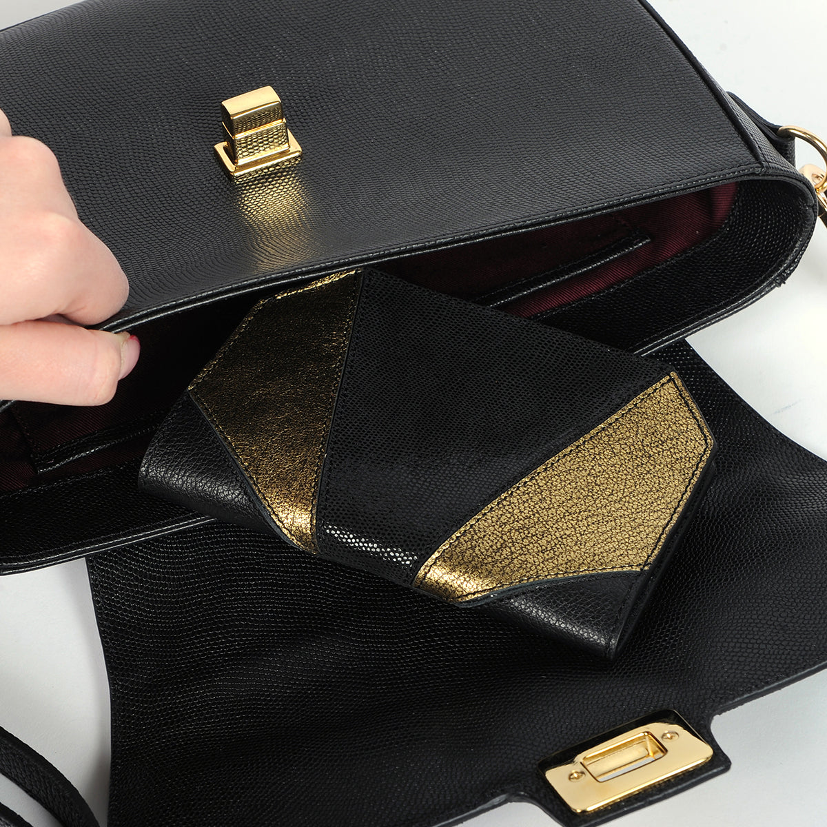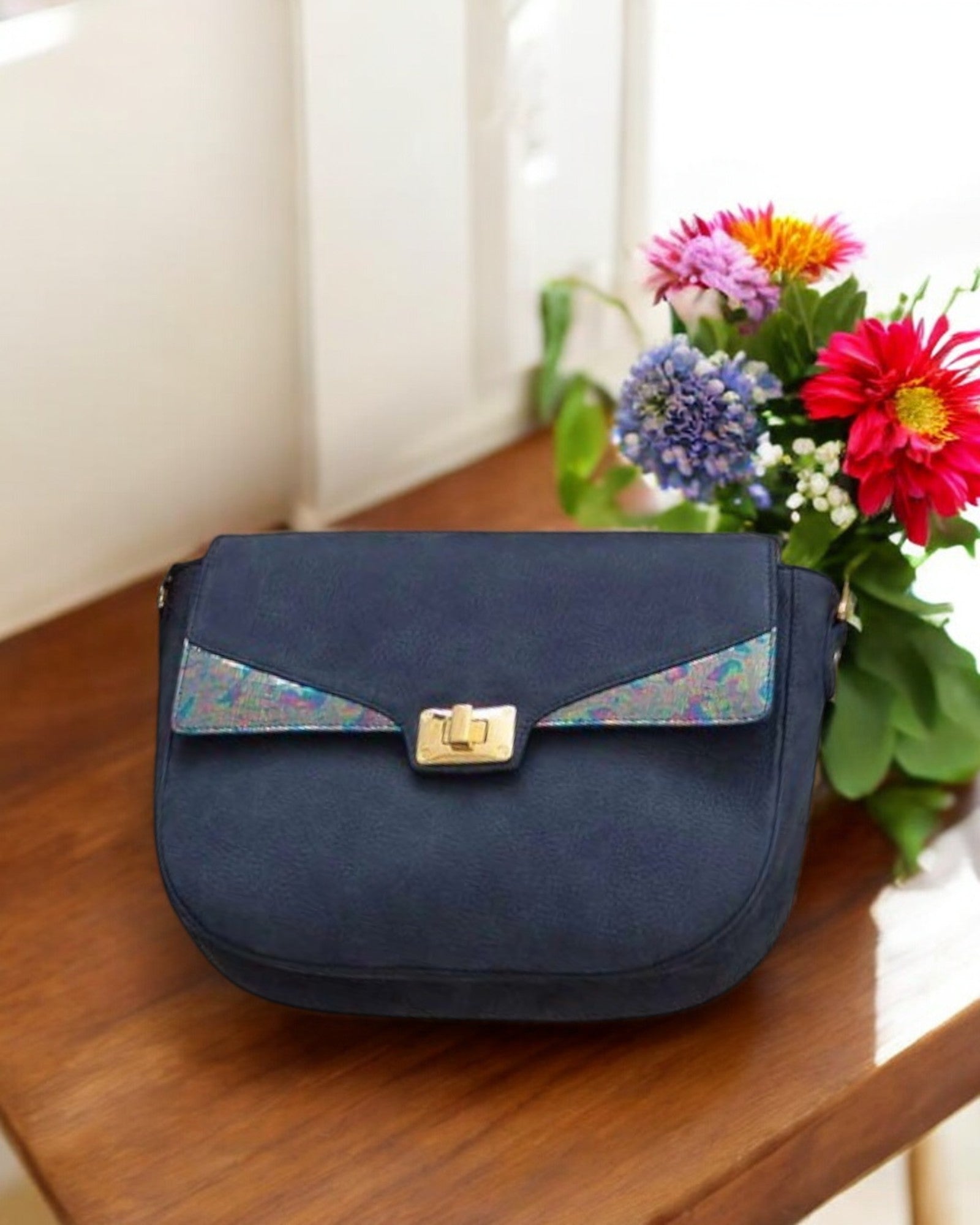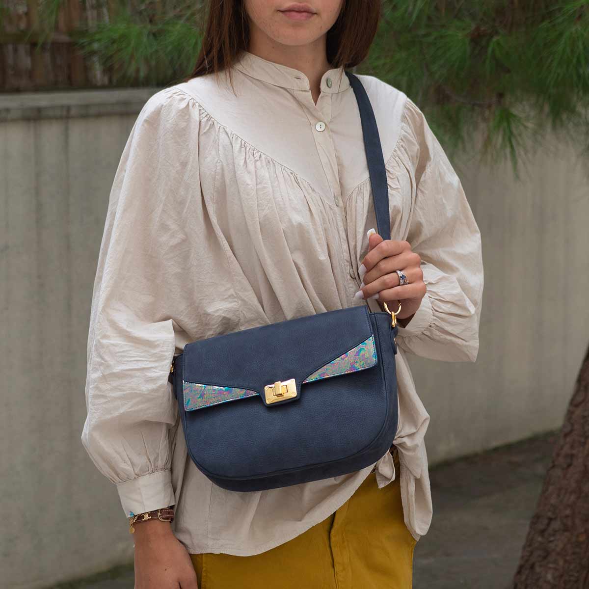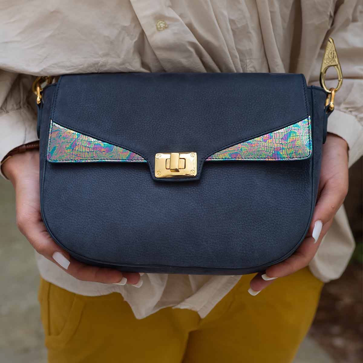 Sac en véritable cuir de Vachette avec mix de cuirs métallisés et/ou pailletés selon les coloris