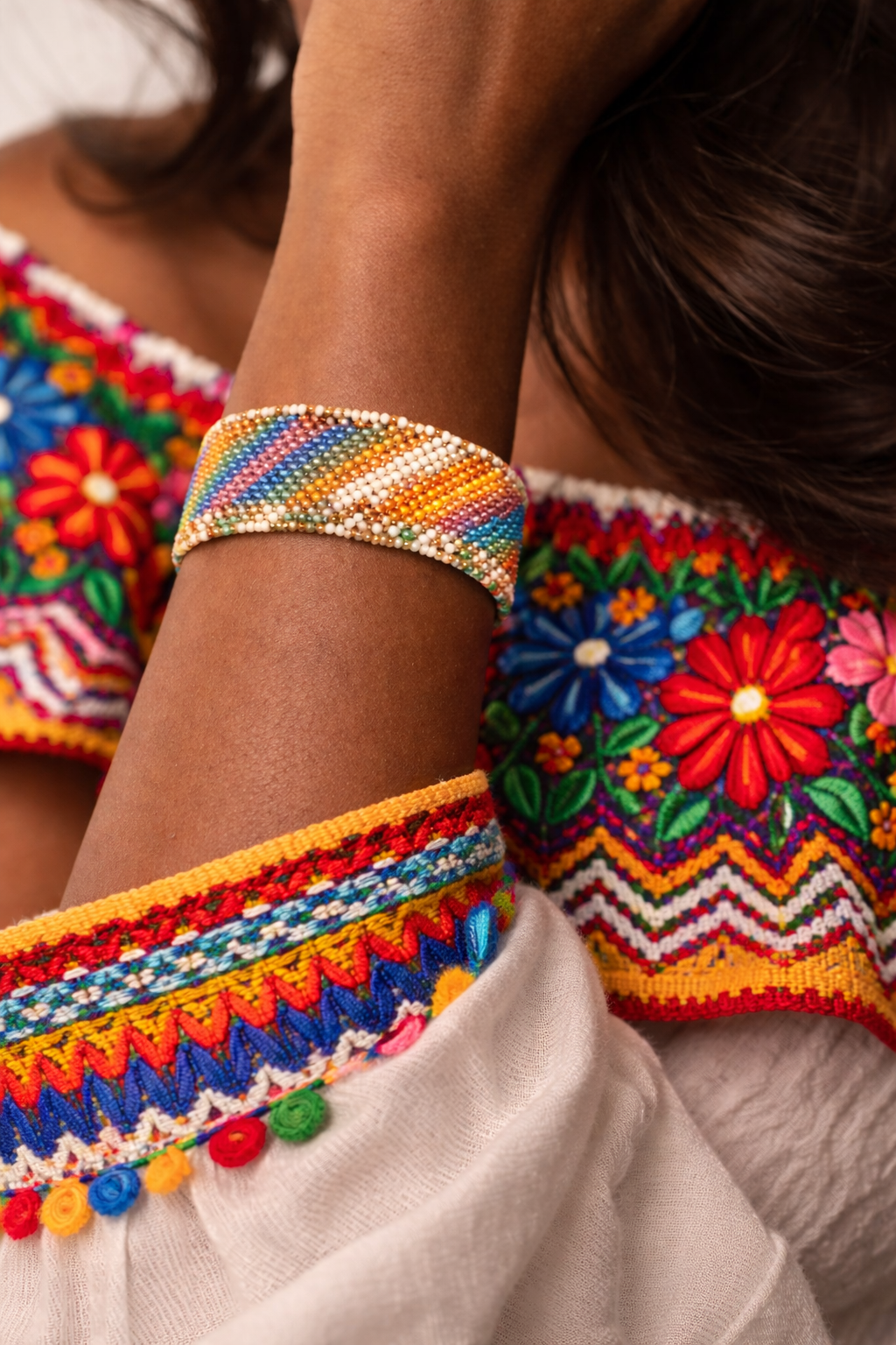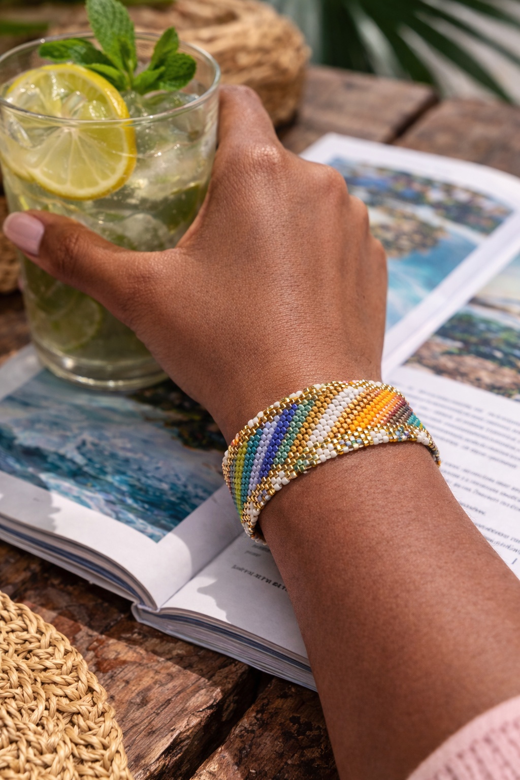 Bracelet Tissées à la main, les bracelets s'inspirent des techniques de tissage colombiennes.