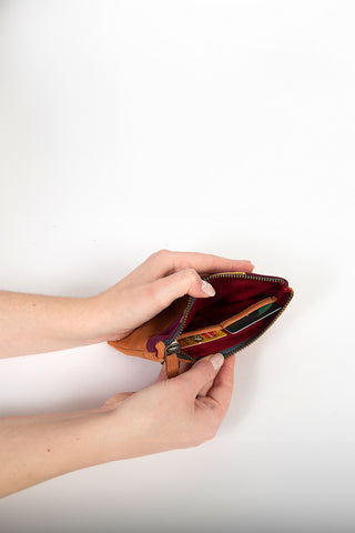 Porte-monnaie en véritable cuir de vachette avec mix de cuirs métallisés et/ou pailletés selon les coloris