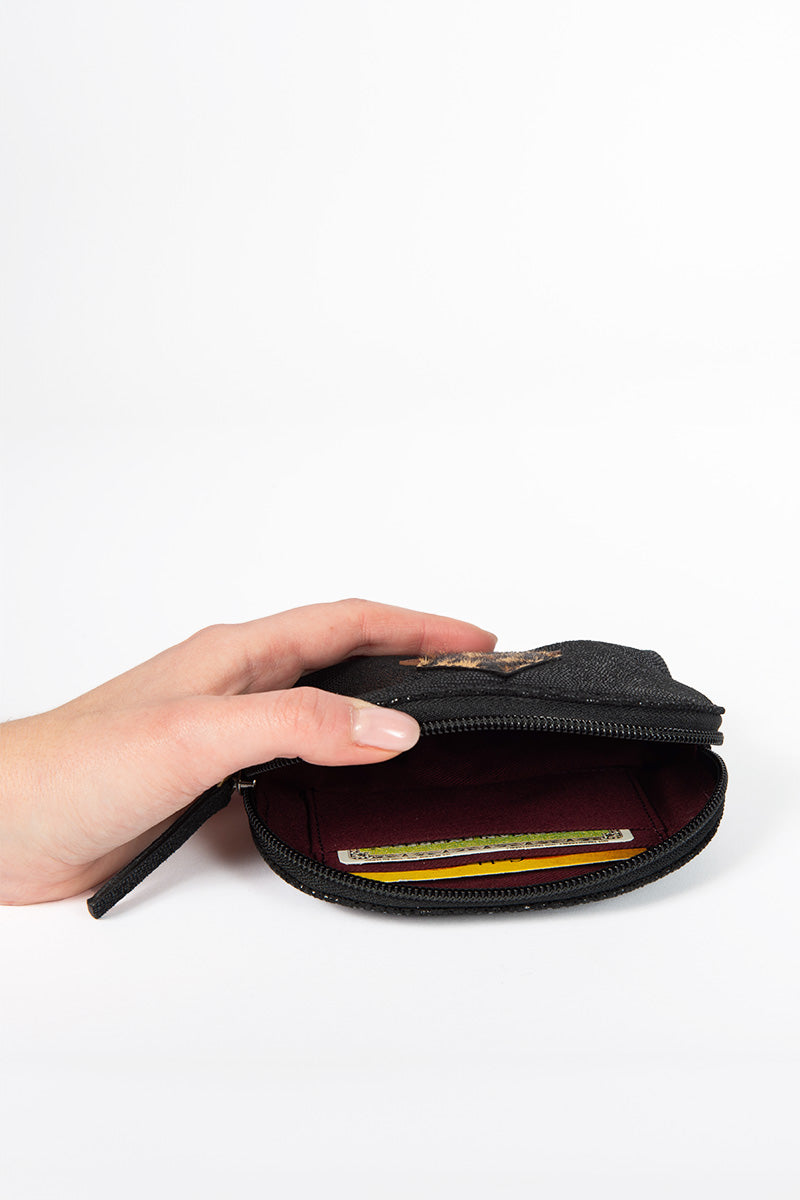 Porte-monnaie en véritable cuir de vachette avec mix de cuirs métallisés et/ou pailletés selon les coloris