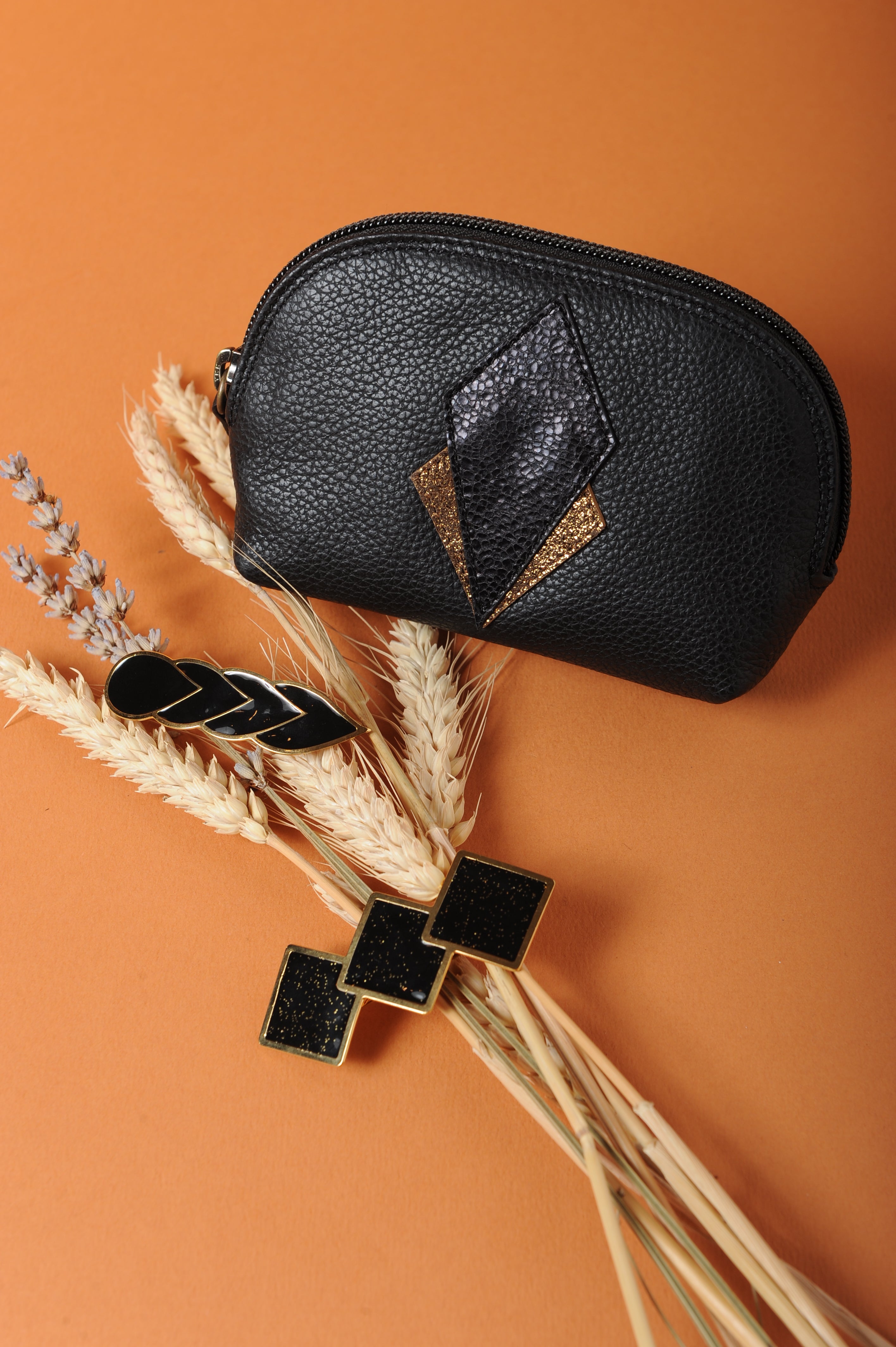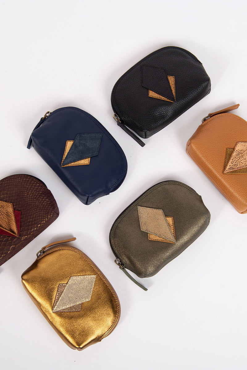Porte-monnaie en véritable cuir de vachette avec mix de cuirs métallisés et/ou pailletés selon les coloris