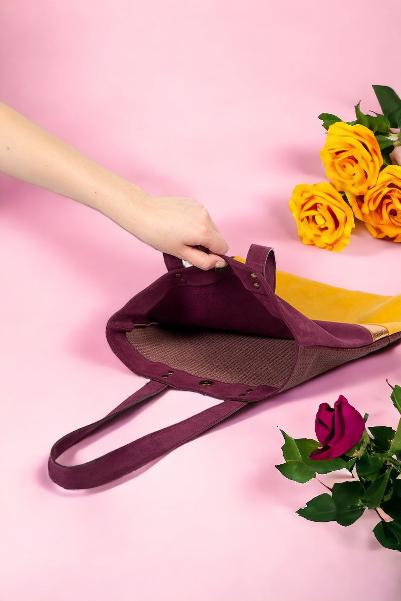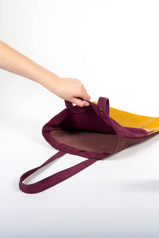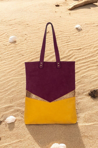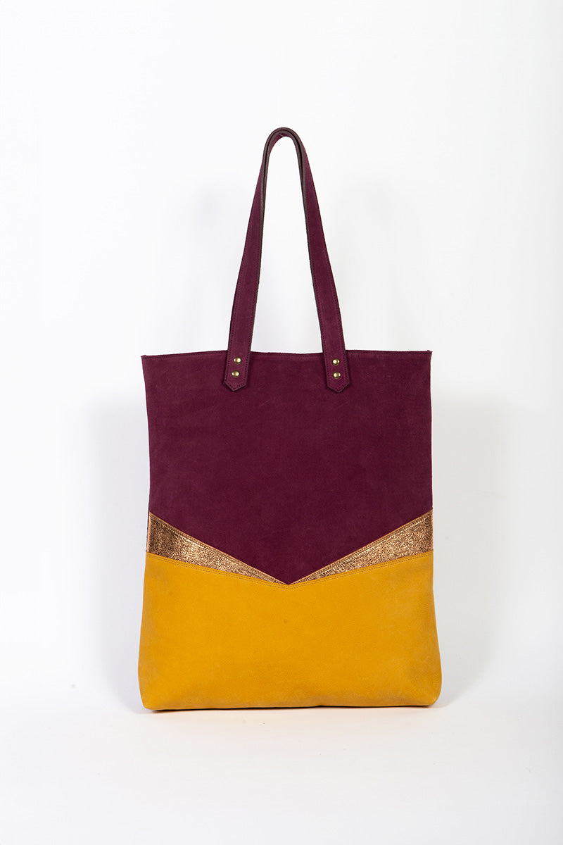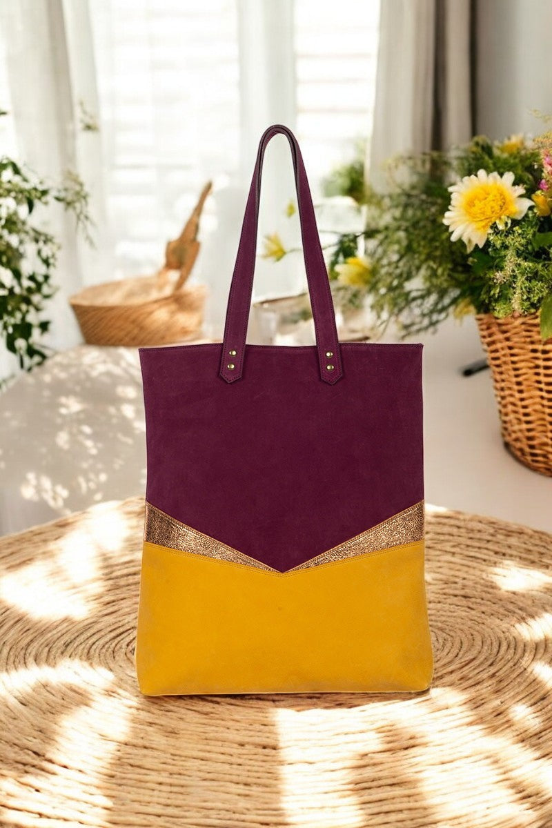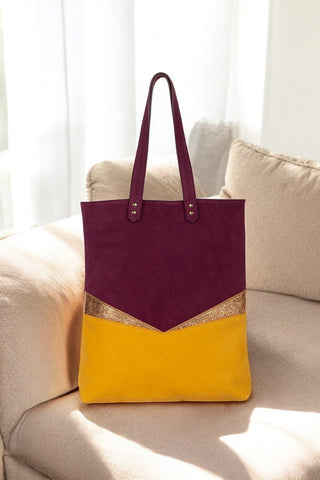 Aux découpes inspirées de l'art déco, ce totebag en cuir est parfait pour tout type de sortie. Le recto et verso sont différents afin de varier les plaisirs de porter le sac.