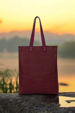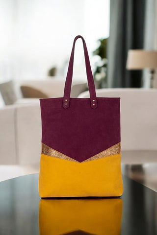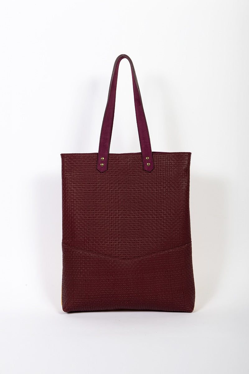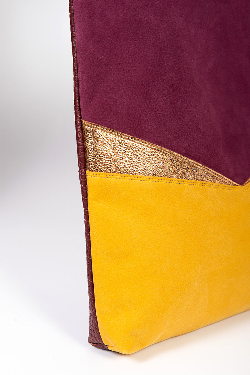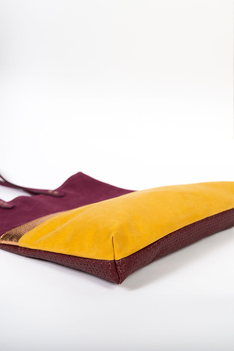 Aux découpes inspirées de l'art déco, ce totebag en cuir est parfait pour tout type de sortie. Le recto et verso sont différents afin de varier les plaisirs de porter le sac.